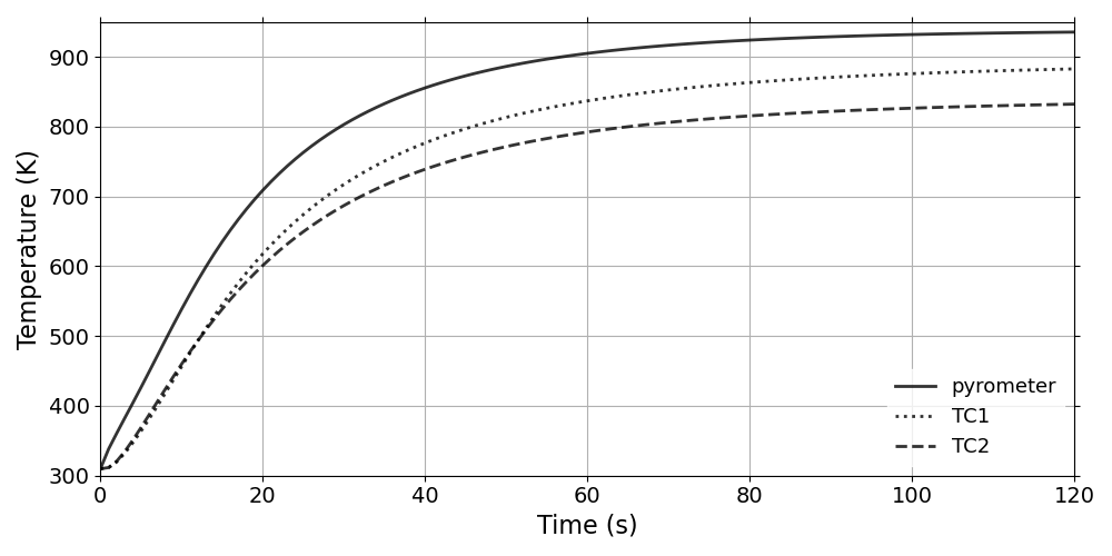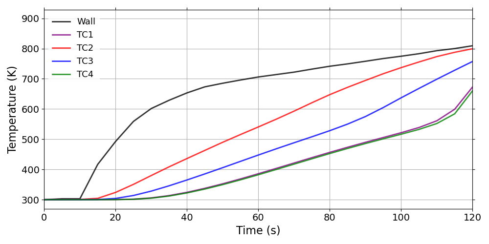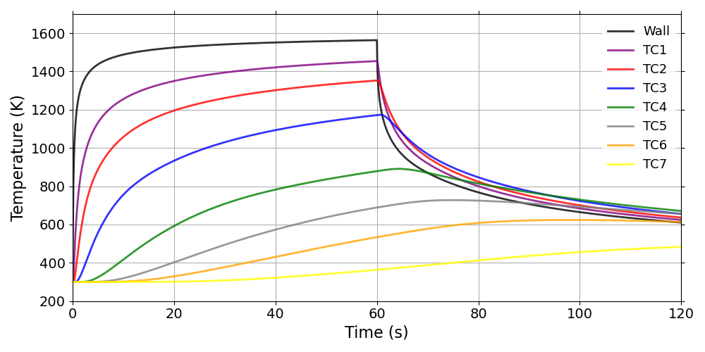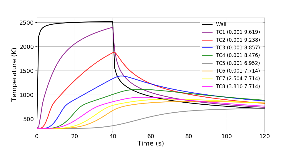 The WoodPyrolysis_cylinder tutorial computes the 2D thermal response of the TACOT material (Fig. 1.44). This case uses the same inputs as .