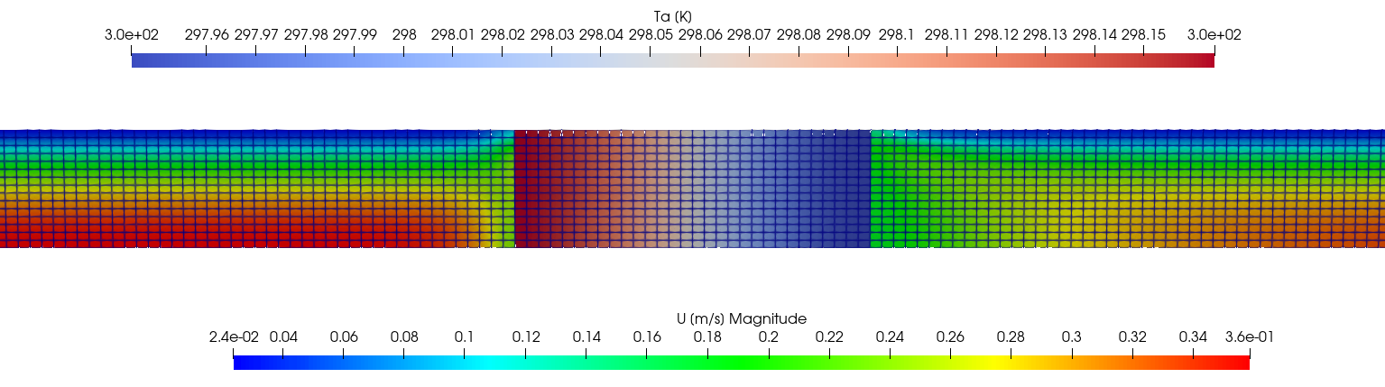 the FlowTube2T tutorial computes the 2D thermal response of a porous medium heated by a gas flow (Fig. 1.30). Table 1.17 shows the summary of the porousMat material used in this case.