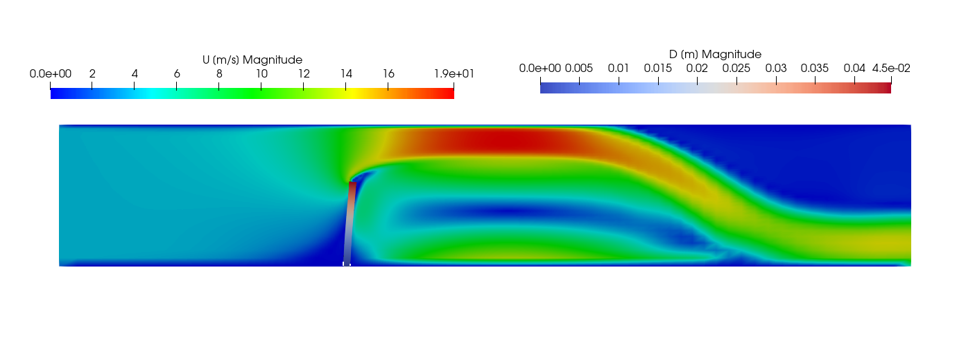 Velocity of the fluid and displacement of the solid for the FlappingConsole case.
